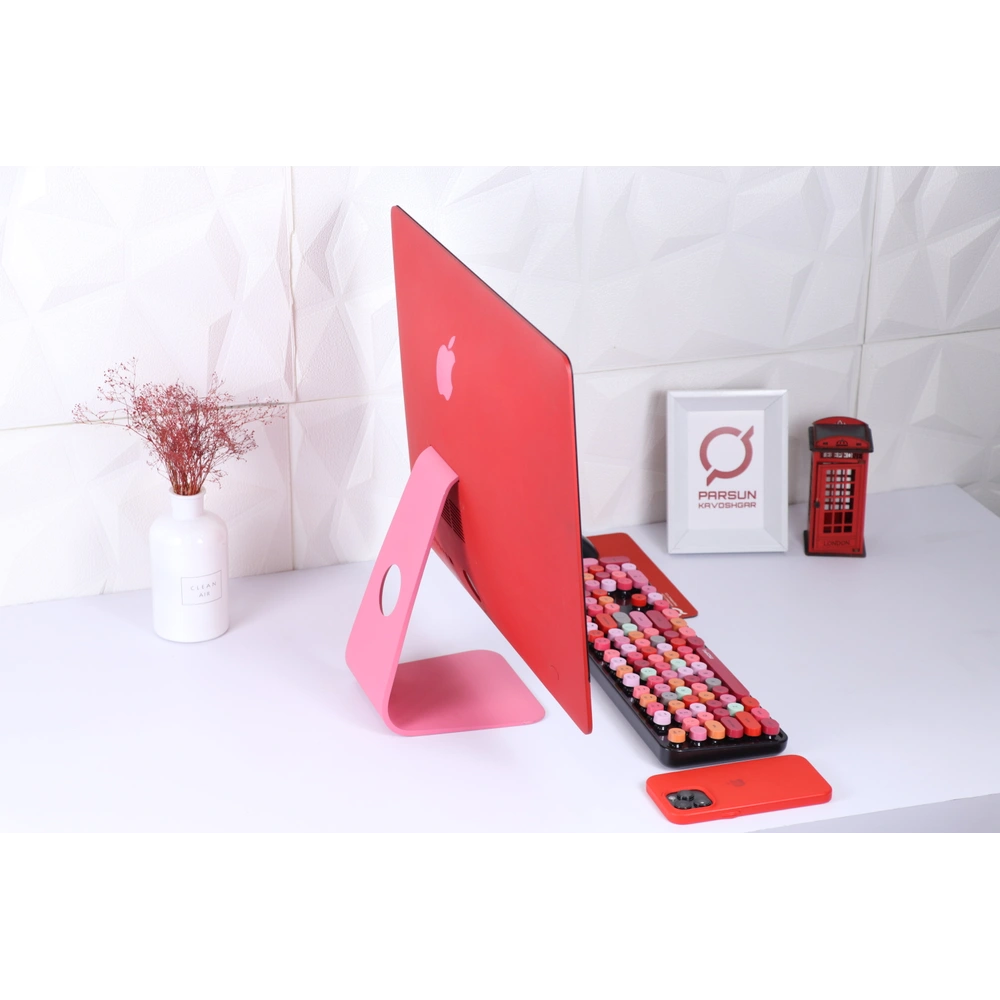 یکی از اولین چیزایی که چشم هر کسی رو می‌گیره، طراحی باریک و شیک این آی مک اسلیمه. مدل A1418 وزنش حدود ۵.۶ کیلوگرمه و به خاطر ابعاد ۱۷.۷×۲۰.۸×۶.۹ اینچ، راحت میشه روی میز کار یا حتی توی دکور خونگی جا داد. رنگ قرمز خاص این مدل، یه جلوه‌ی متفاوت به میز کار میده. تازه، چون آی مک رنگی هست، خیلی راحت میشه با سبک‌های مختلف دکوراسیون ستش کرد؛ چه میز مینیمال سفید داشته باشی، چه فضای اداری مدرن یا حتی اتاقی با رنگ‌های گرم و انرژی‌بخش.
