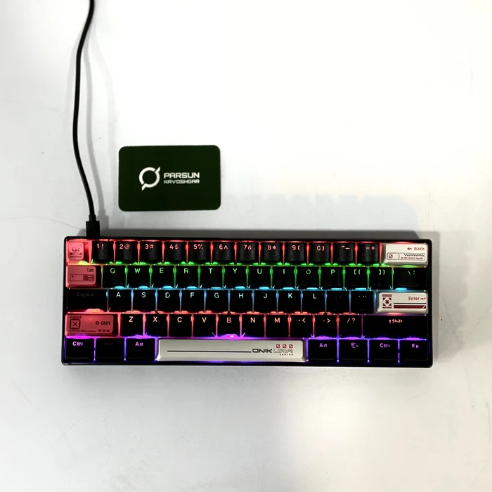 ظاهر کیبورد گیمینگ با سیم اونیکوما ONIKUMA G55 اولین چیزییه که توجهت رو جلب میکنه. طراحی جمعوجور ۶۱ کلید باعث شده این مدل برای میزهای شلوغ، ستهای مینیمال و محیطهای گیمینگ کوچک بهترین انتخاب باشه. از سمت دیگه، نورپردازی RGB اون واقعاً زیباست و هر حالتی رو که انتخاب کنی، حس حرفهای بودن به میزت میده.