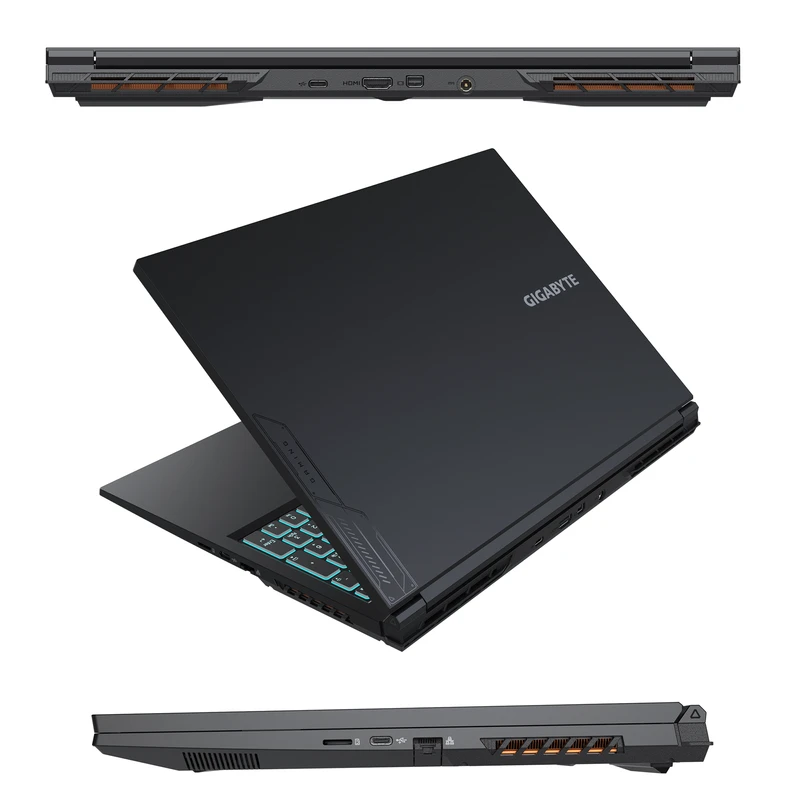 ظاهر لپ‌تاپ GIGABYTE G6 KF 2024 همون‌قدر حرفه‌ایه که سخت‌افزارش. بدنه‌ی مشکی با طراحی زاویه‌دار و جزئیات ظریف باعث شده حس یه لپ‌تاپ گیمینگ واقعی رو منتقل کنه، بدون اینکه خیلی شلوغ یا اغراق‌آمیز باشه.
