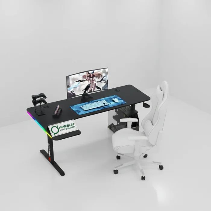 بدنه میز ترکیبی از فیبر کربن و فلزه. سطح فیبر کربنی مقاوم و ضد خشه، پایههای فلزی هم پایداری و ثبات میز رو تضمین میکنن. این یعنی یه میز که تا سالها بدون مشکل کار میکنه و حتی سنگینترین تجهیزاتت رو بدون هیچ نگرانی تحمل میکنه. GD 3200L RGB یه سرمایهگذاری بلندمدته که فضای گیمینگت رو حرفهای و ایمن نگه میداره.