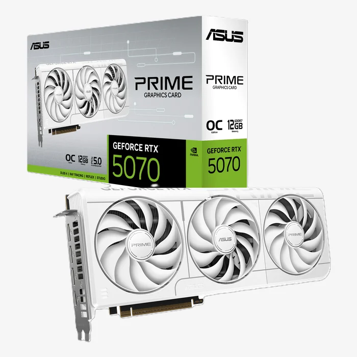 طرفداران تم سفید: اگر ظاهر کیس برایت مهم است، این کارت گرافیک ایسوس پرایم RTX 5070 سفید با مادربردها/کولرهای سفید ست بینقصی میسازد.