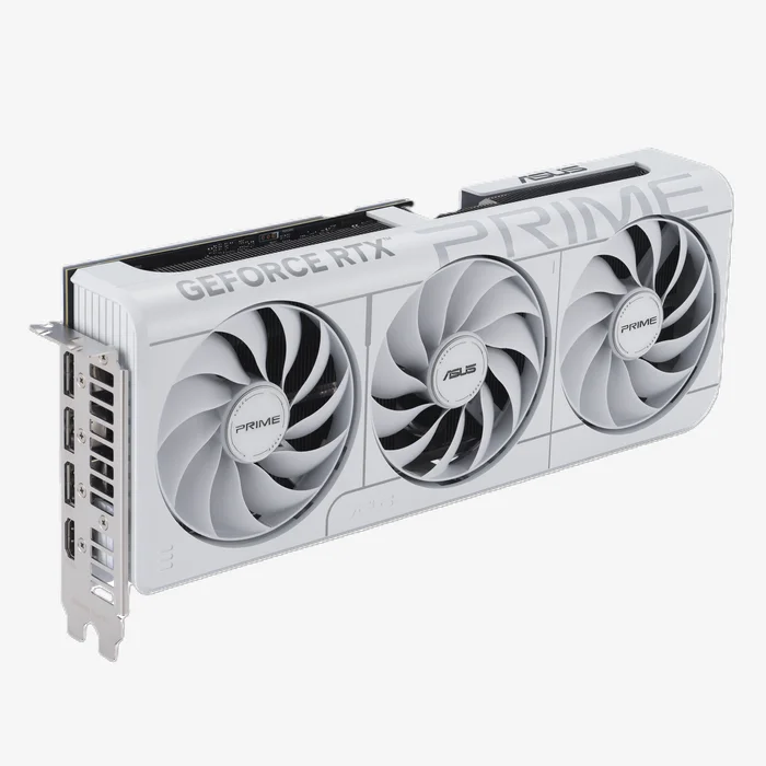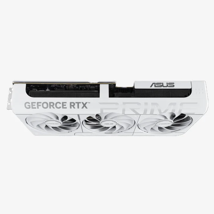 سری Prime همیشه مینیمال و بیحاشیه است—خصوصا نسخه White که برای ستکردن با تم سفید عالیه. بدنه و هیتسینک حجیم اما 2.5-Slot هستند؛ یعنی هم دفع حرارت مناسبه و هم با خیلی از کیسهای Mid-Tower و حتی برخی SFFها سازگار میمونه. خود ایسوس هم این کارت رو با عنوان SFF-Ready 2.5 Slot Design معرفی کرده؛ یک امتیاز مهم برای کسانی که میخواهند سیستم جمعوجور اما قدرتمند ببندند. فنهای Axial-tech و یاتاقانهای دو-توپی (Dual-Ball) هم برای دوام بیشتر و صدای کمتر انتخاب شدهاند.
